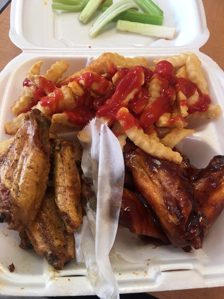 Green salad with mixed vegetables. Served with fries and a canned drink. I ordered a wings and fries and was charged more than the menu price. America�s best wings trending now. 8650 pulaski highway, rosedale, md 21237; Caribbean citrus has good flavor.